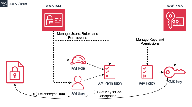 In short, to keep your data confidential, you should use encryption wherever possible. To do this, you should implement a policy for managing encryption and key material. In addition, you should follow the principle of “Least Privilege” and limit the permissions granted to your users and resources to the minimum necessary to prevent unauthorised access. You can combine both services: with KMS you can limit who has access to your keys, and with IAM you can define who has access to KMS.