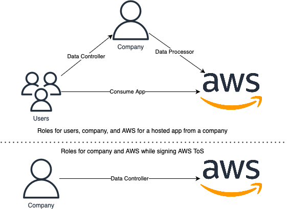To set the scene, let’s simplify things by assuming there are only two parties involved: AWS and you, the AWS customer. Each has different roles and obligations depending on the scenario. Under the GDPR, two key roles are defined – the Data Controller and the Data Processor – both of which are particularly relevant when using AWS.