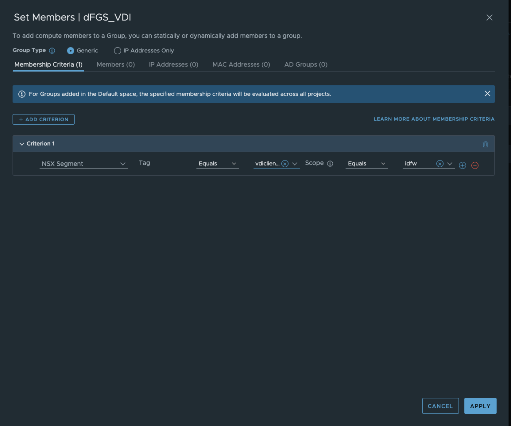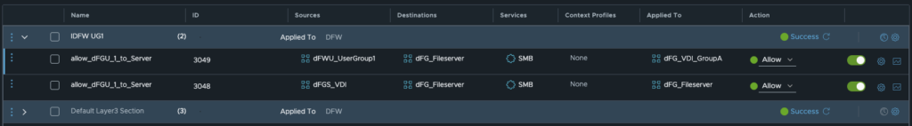 A customer of mine has the use case that his entire environment must be micro-segmented. Of course, this does not stop at the VDI environment. Since my customer uses non-persistent VDIs (the VMs are deleted after each logoff), no tags can be used for the security groups. After deleting the VM, the tag would also be removed and a new VDI would have no tags and would thus be isolated. This can be solved with automation or with the Identity Firewall (a combination of both solutions is also conceivable and makes sense). In the first step, my customer opted for the Identity Firewall because it allows generic VDIs to be used and authorisations to resources can be conveniently controlled via the customer AD. In addition, each user/user group receives individual firewall rules, which corresponds to the need-to-know principle.